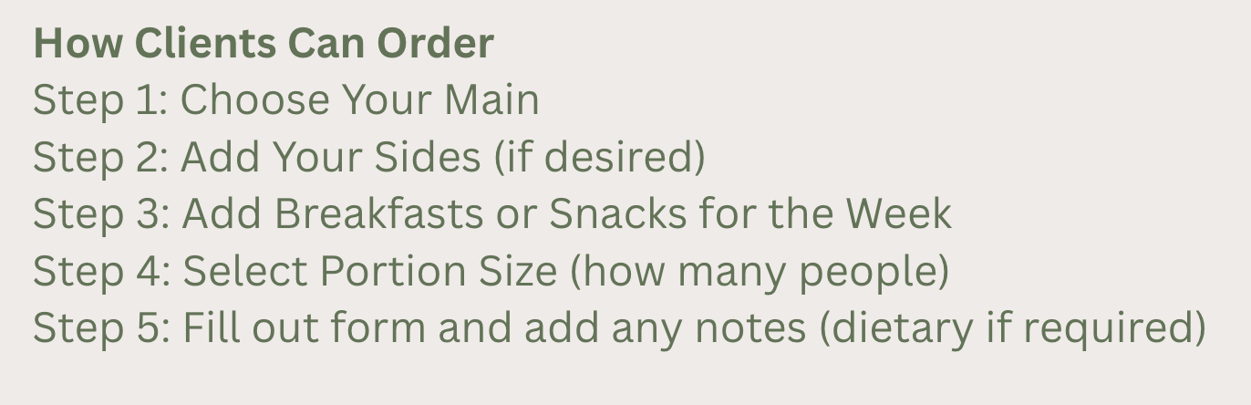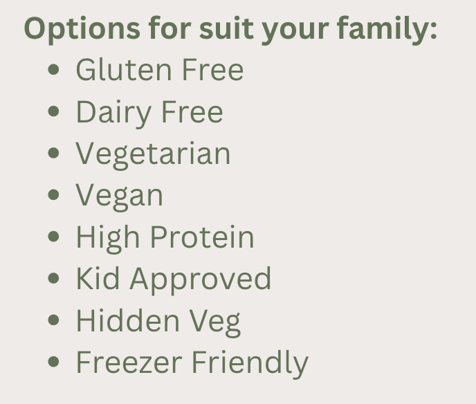 5 Family Dinners (add sides to dishes to complete meal e.g., lemon garlic chicken and mash)